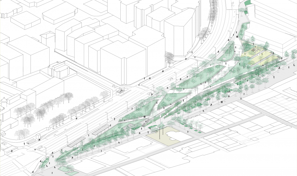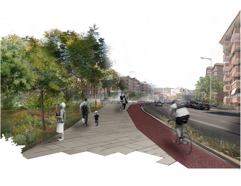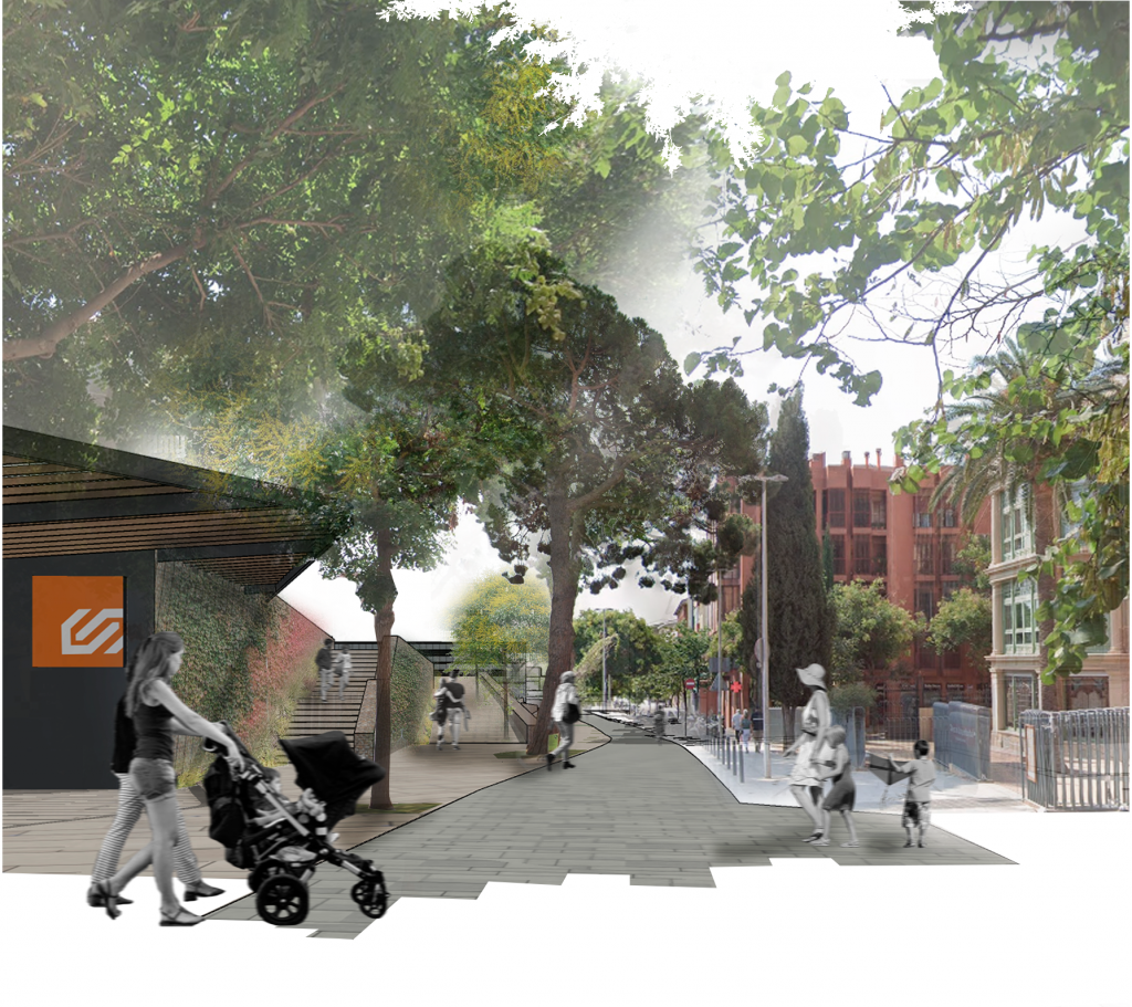 El diseño del nuevo jardín define un paseo verde entre los diferentes puntos clave del barrio, generando espacios de descanso y juego protegidos del tráfico gracias a la implementación de vegetación. Además, se prevén rampas accesibles, estructuras vegetales para mejorar el confort climático, y la incorporación de energías renovables mediante pérgolas fotovoltaicas que abastecerán el alumbrado público. También se aplican criterios de sostenibilidad mediante el uso de materiales reciclados y sistemas de drenaje eficiente.