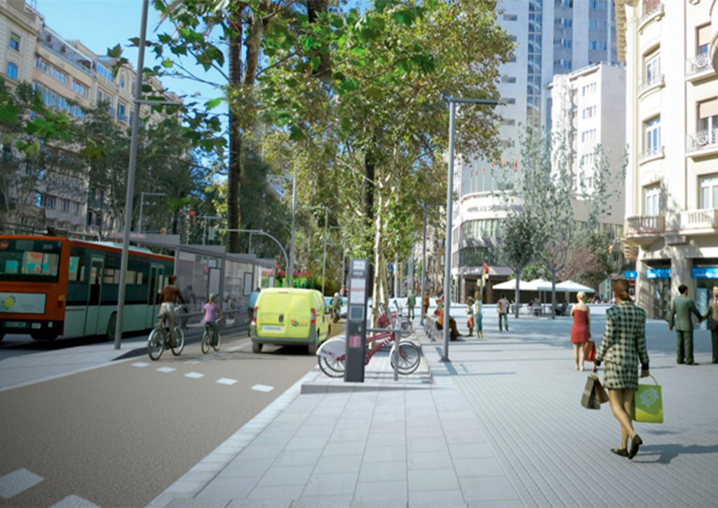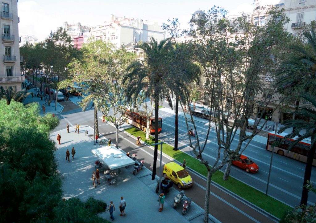 Con este condicionante, se optó por diseñar una solución, entre Francesc Macià y Passeig de Gràcia, que fuese compatible con una futura conexión. La propuesta, amplió las aceras y trasladó los carriles laterales a las tercianas (espacio entre hileras de árboles), sin intervenir en el tronco central  ni afectar la configuración actual del transporte público y el tráfico privado. La modificación del uso de las tercianas (de peatonal a viario), afectó todas las redes de servicios que las atravesaban, obligando a desviar más de 25 líneas de media tensión.