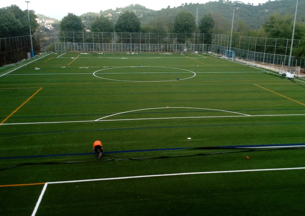 Consiste en la substitución del césped artificial y de la base elástica de 5 campos de fútbol municipales: Vallvidrera (Sarrià – Sant Gervasi), Andrade (Sant Martí), La Báscula (Sants – Montjuïc), Porta (Nou Barris) y Bon Pastor (Sant Andreu).