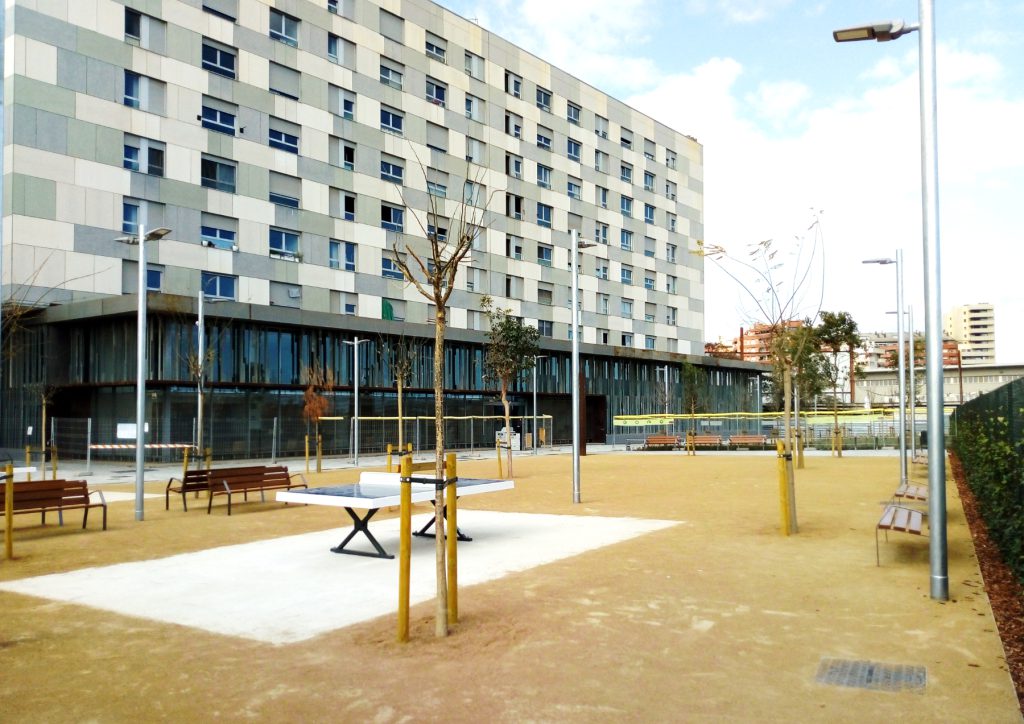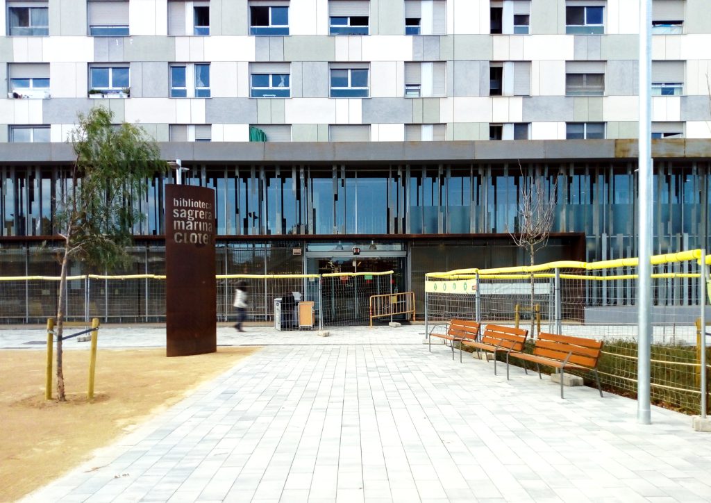 La urbanización del entorno de la Biblioteca La Sagrera – Marina Clotet, se realiza bajo la premisa de remarcar y potencial el carácter pacificado del ámbito, integrando los modelos de urbanización según el uso de los espacios: zonas de paso, áreas de descanso y espacios verdes.